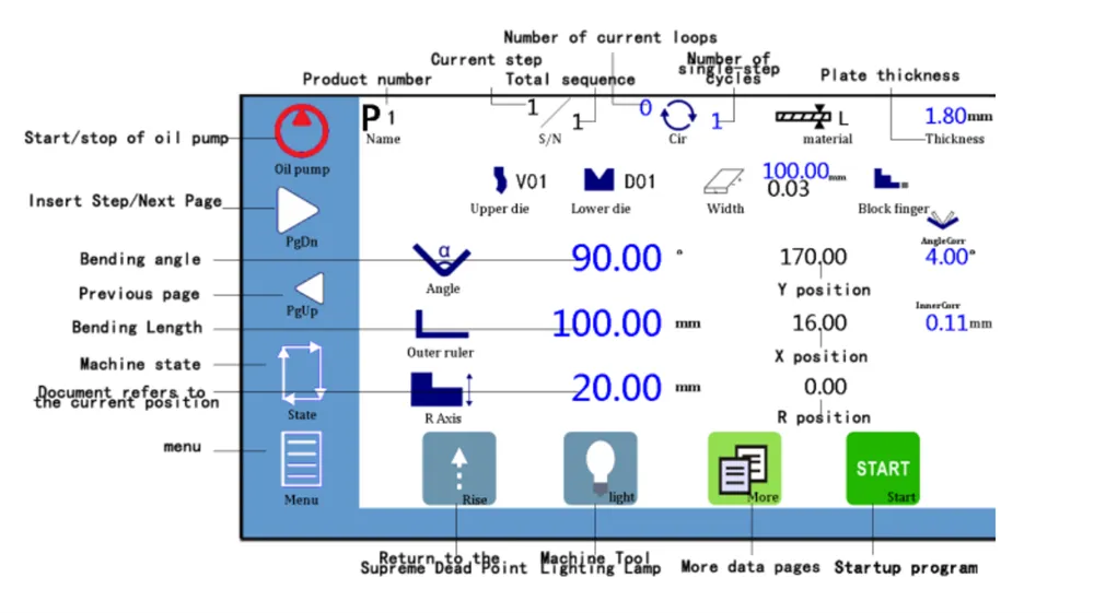 The TP10S controller reshapes the operational mode of bending machines by offering a comprehensive set of features that boost productivity, precision, and flexibility. Whether managing multiple bending projects or customizing settings for specialized operations, the TP10S controller is engineered to meet the diverse needs of modern manufacturing. Its advanced capabilities in product management, main interface functions, and extensive menu options make it an essential tool for any production environment—ensuring high-quality results and efficient processes.