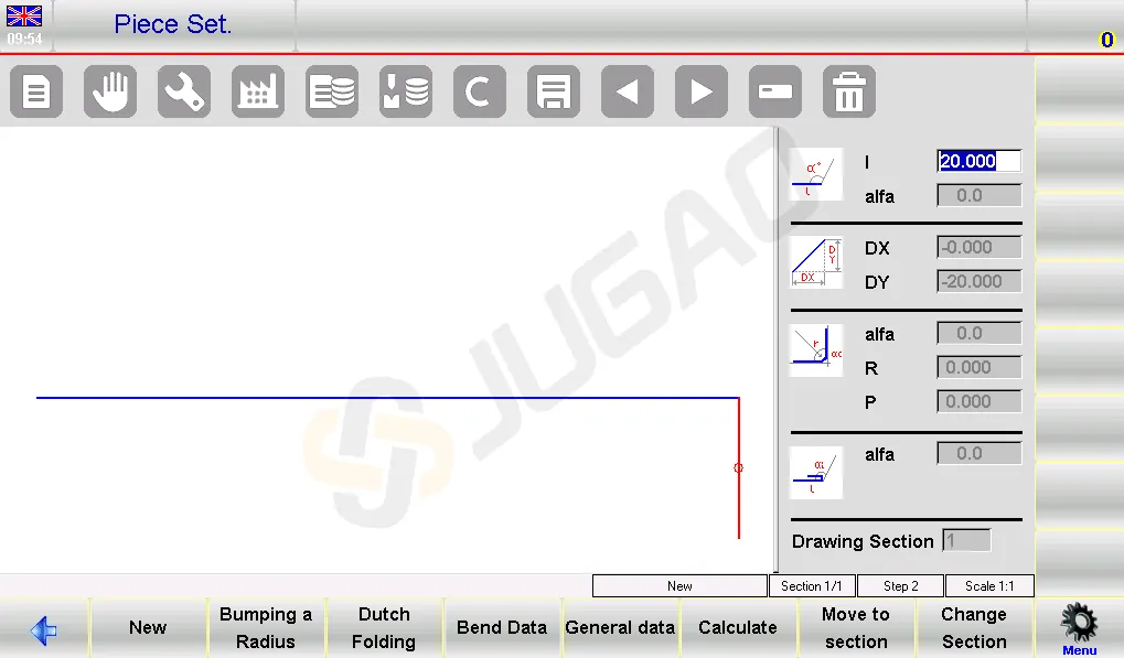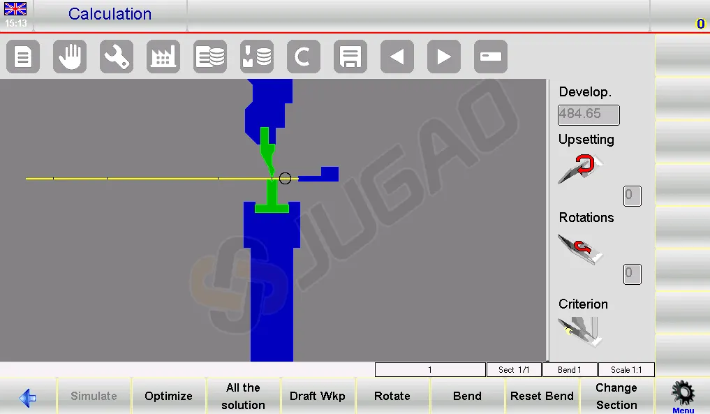 l Process: Initiate via the drawing page by pressing [Calculate]. A simulation displays the setup for bending.