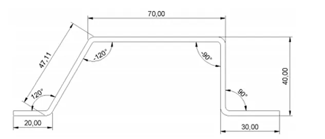 In order to realize a radius bend it is necessary to bear in mind that as per the convention, there must be a length of metal sheet before and after the radius.