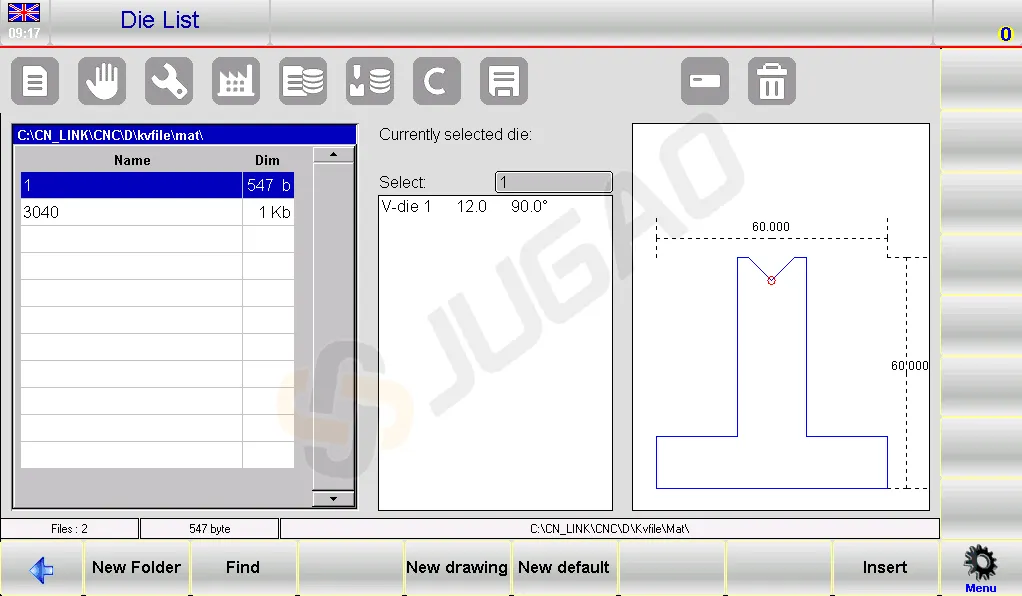 l Die and V-Die Selection: