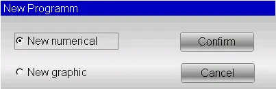 To enter a new graphic program press [New Programm] from the Editor page of a numerical program and select [New graphic]: